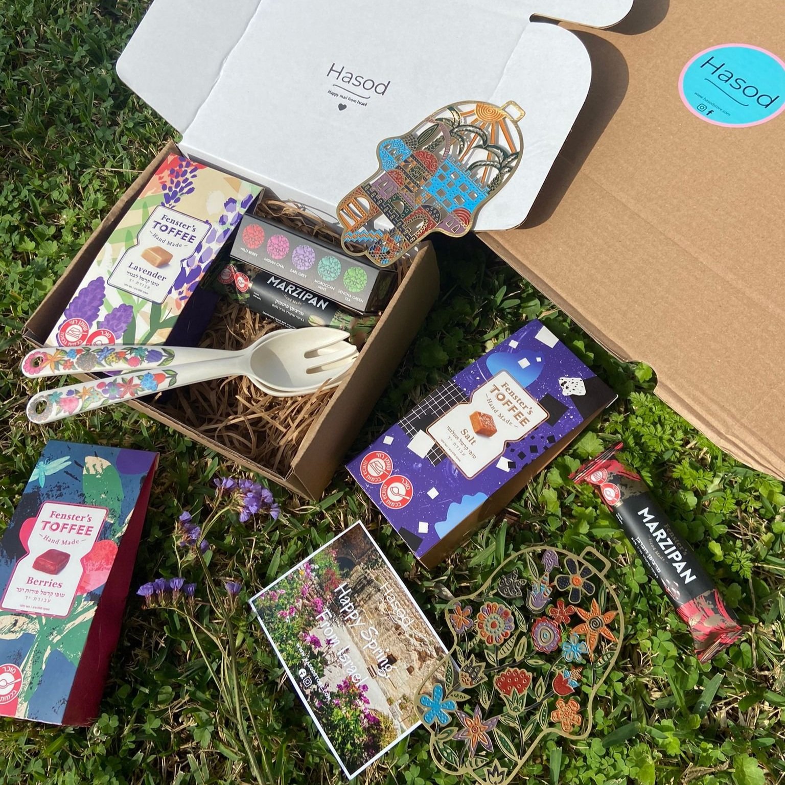 Get Salad Spoons (flower inspired), Israeli Toffee, A Golden Hamsa (either flower inspired or jerusalem), Israeli Tea and a delicious Marzipan. All kosher for Passover